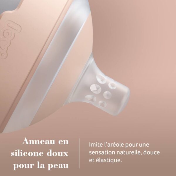 Sa tétine large et douce, inspirée de la morphologie du sein, reproduit les sensations naturelles connues par bébé :