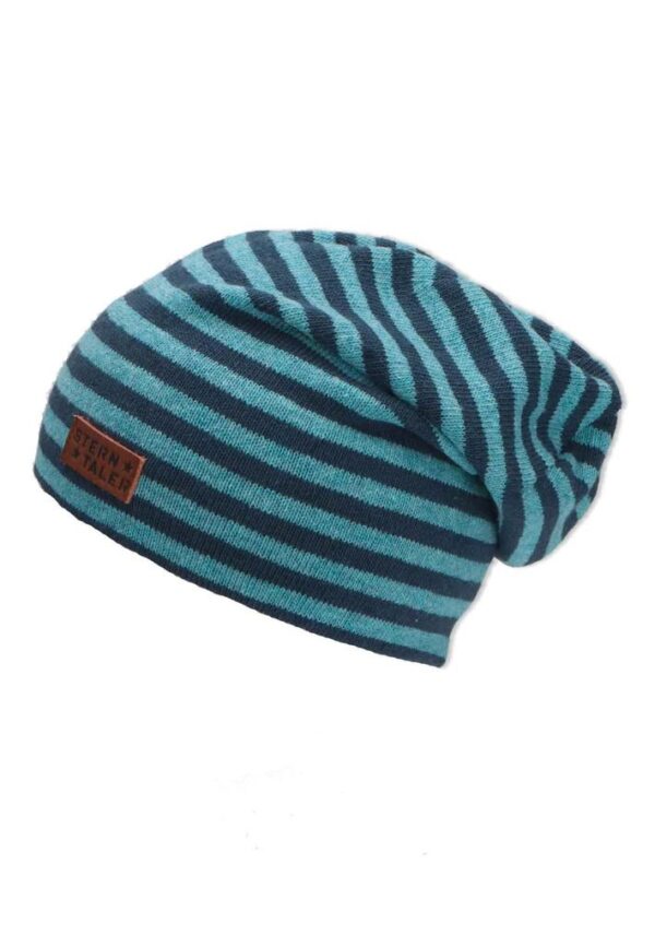 Confectionné en maille légère, le bonnet Sterntaler SLOUCH, rayé bleu clair, se niche confortablement contre votre tête.
