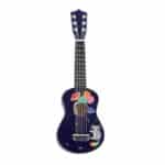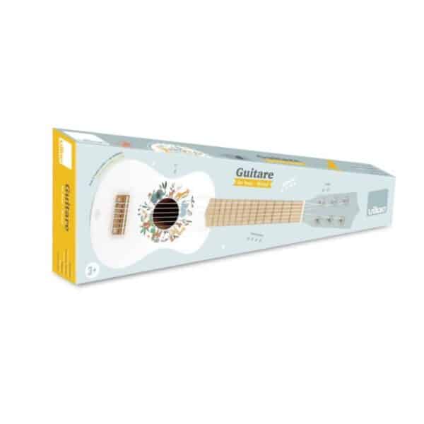 Cette guitare dispose de 6 cordes en nylon — sans amplification électronique — pour que l’enfant expérimente les sons, le rythme et le geste musical. Un médiator et une corde de rechange sont fournis, ce qui ajoute une dimension pratique et durable.