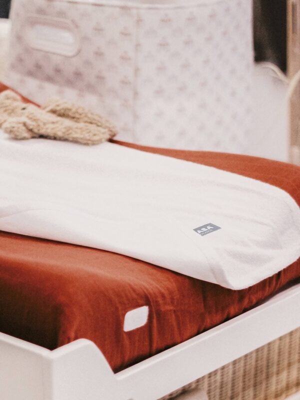 Ensemble drap-housse en coton bio + serviette éponge imperméable, conçu spécialement pour le matelas à langer Sofalange de BEABA. Pratique, doux et hygiénique, il apporte confort à bébé et sérénité aux parents.