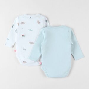 Le set de 2 bodies croisés à manches longues bleu clair et écru est l’indispensable du quotidien de votre bébé. On adore ses imprimés dinosaures !