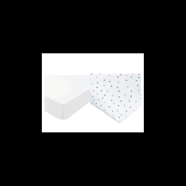 Lot de 2 Draps Housses Jersey Imprimé Etoile Gris 70x140cm Domiva