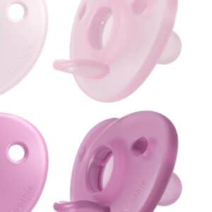 Toute mignonne, la sucette orthodontique Soothie de Philips AVENT est conçue d’une seule pièce en forme de cœur et dotée d’une collerette flexible souple et incurvée conçue pour suivre les courbes naturelles du visage de bébé. Développée pour les prématurés et utilisée par les professionnels de santé, elle permet par sa tétine en forme de mamelon de stimuler l’aspiration et de développer la succion naturelle du nourrisson.