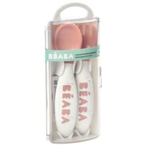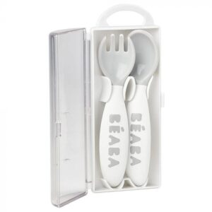 Le set de 2 couverts ergonomiques 2ème âge + boîte de transport de Béaba apprend à votre petit à manger de manière autonome dès l’âge de 8 mois.